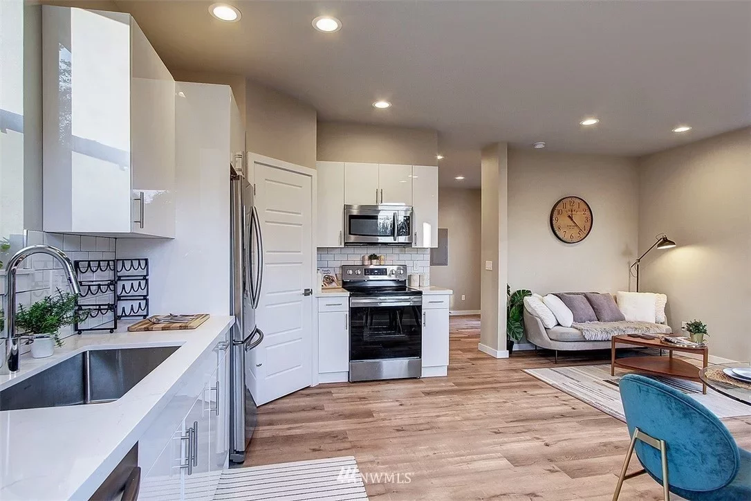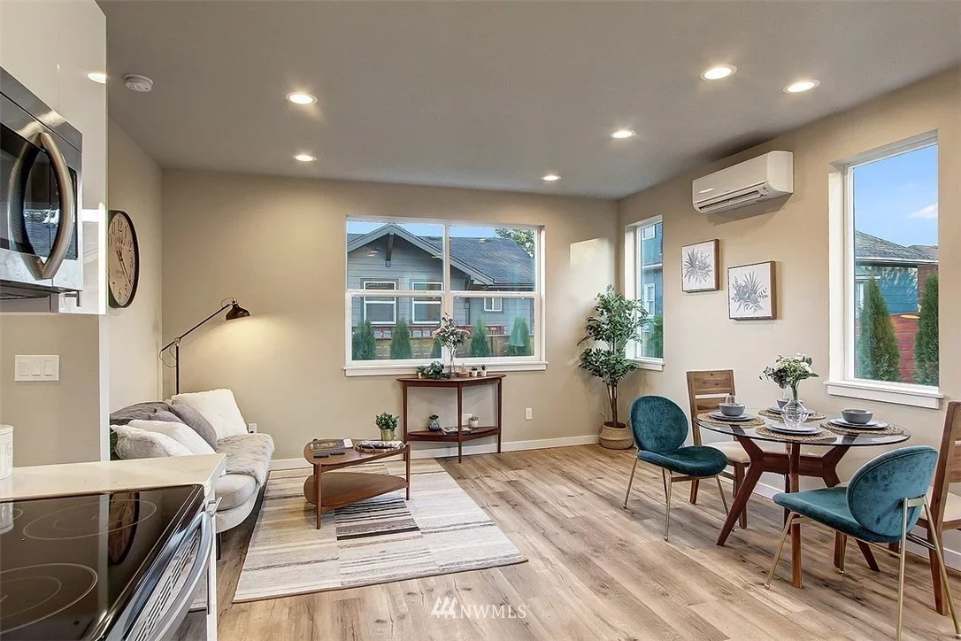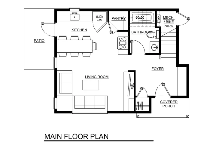 Even with a compact footprint, the design accommodates all living essentials including 2 baths, one on each floor, convenient bike parking, and a carefully designed floor plan with comfortably sized rooms. This design also includes a covered balcony off the master bedroom, ample storage, and an in-unit stackable washer and dryer space.