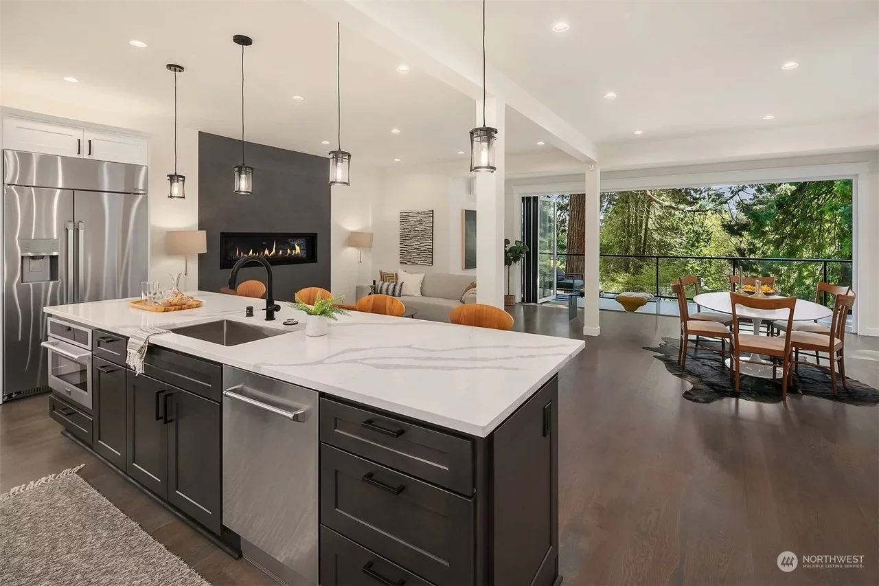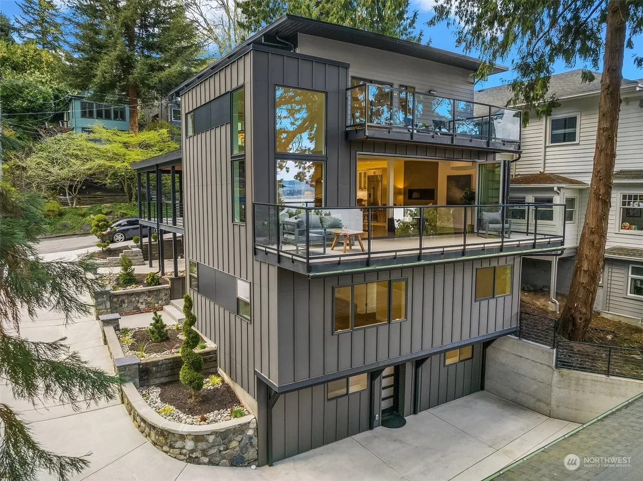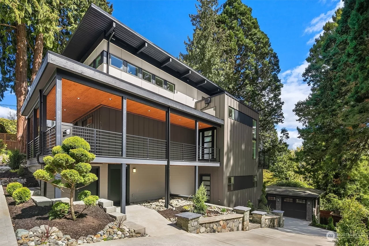 We redesigned this Madrona home from the studs up into a serene sanctuary framed by towering Sequoias and breathtaking lake, mountain, and city views. The design flows effortlessly—from a spa‑like primary suite with balcony and walk‑in closet, to a flexible lower level, EV‑ready heated garage, and a standalone ADU—creating a modern, purposeful home in perfect harmony with its natural surroundings.